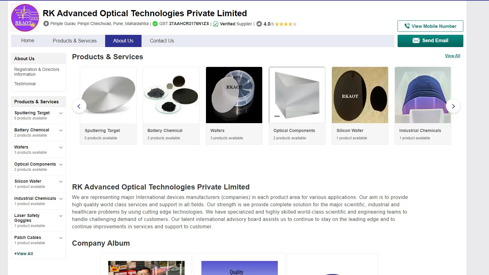 Company introduction: RK Advanced Optical Technologies Private Limited is a leading manufacturer and supplier of sputtering targets and other optical coating products in India. We have a modern infrastructure that is equipped with the best technology and machinery. We have a team of expert and experienced professionals who are proficient in providing quality products and services to our customers. We have a wide range of sputtering targets that can be used for various applications in different sectors. We also provide customized solutions to our customers as per their needs and expectations.